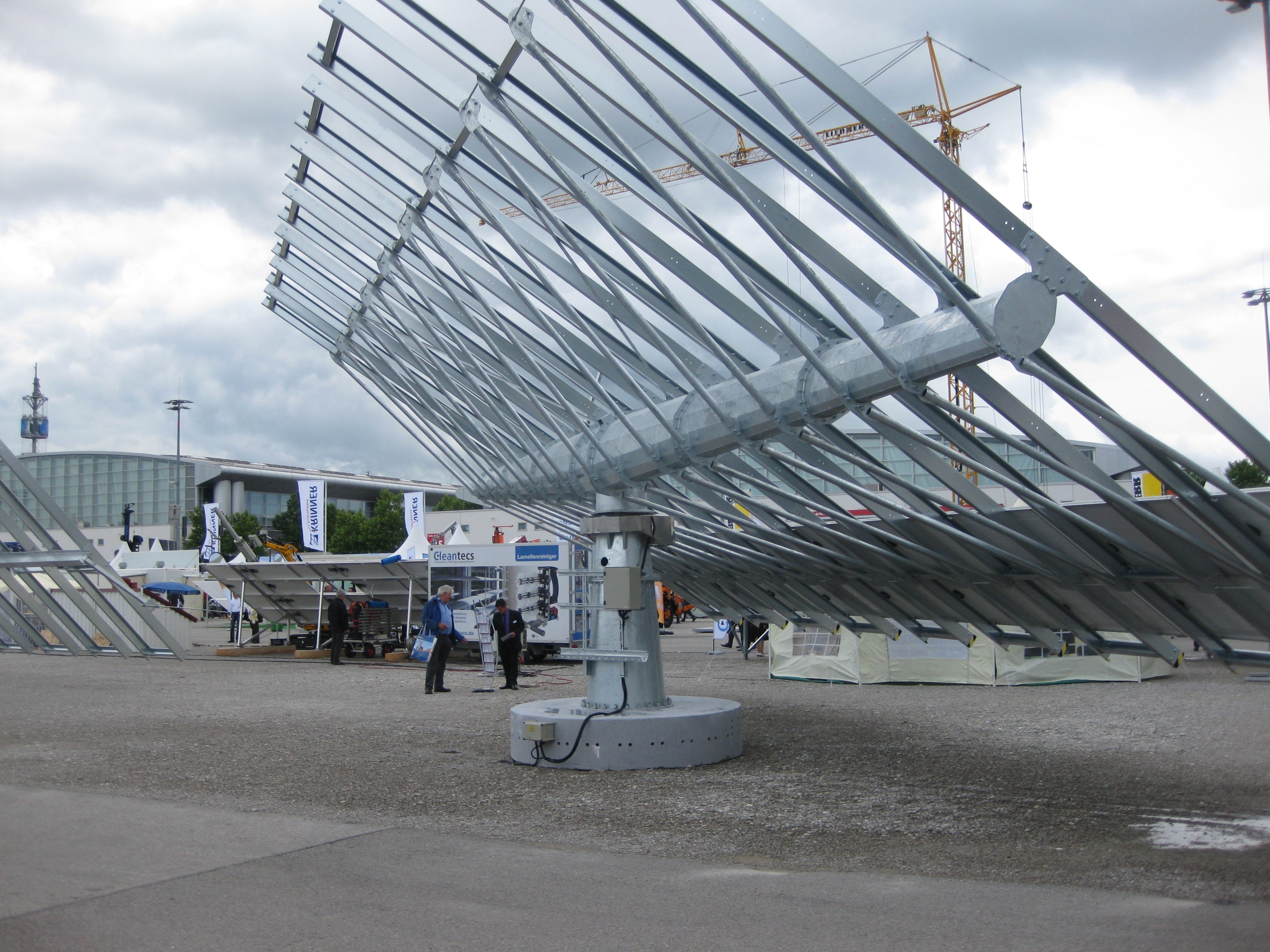 Sonderlösungen: für die gestalterische Einbindung von Solaranlagen in Objekte in Form beliebiger Glasflächen, Vordächer, Abdeckungen, für Car-Ports etc. werden einige Lösungen gezeigt, wobei hier naturgemäß die gestalterischen und architektonischen Aspekte im Vordergrund stehen. Einige wenige Hersteller bieten färbig gestaltbare Absorber an. Von ganz anderer Dimension und schwer beeindruckend – um nicht zu sagen fast furchterregend – sind die gewaltigen Nachführunggssysteme auf dem Freigelände. Wer sich so etwas auf sein Grundstück üblicher Größe stellen wollte, bekäme zwar gewaltig viel Energie geliefert, nur für sein Haus wär halt kein Platz mehr.